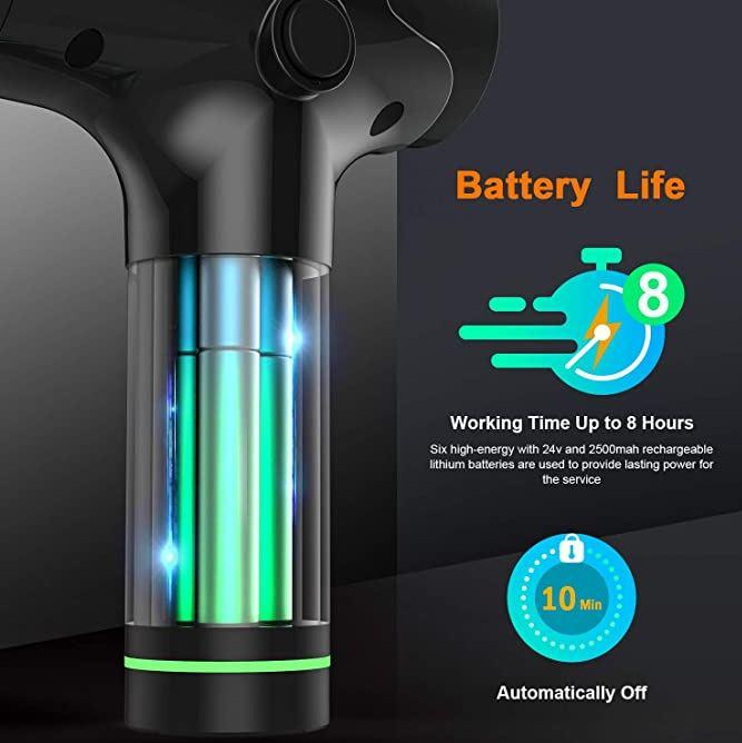 - 8 MASSAGE HEADS- A deep tissue massage gun that offers 4 customized massager heads, provides a relaxing massage experience .Activate the muscles, stimulate blood flow, greatly reduce muscle recovery time, and relieve pain from head to toe.