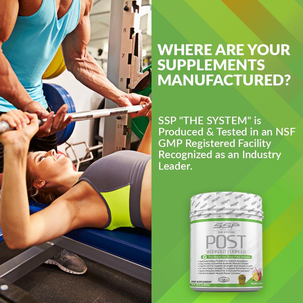 SSP Nutrition’s POST-Workout formula nutrients immediately scavenge free radicals, repair muscle cells and enhance growth potential during this critical and short lived “anabolic window”. POST is based on a proprietary blend of natural ingredients that replenish muscle cells with the most scientifically advanced blend of effective nutrients.